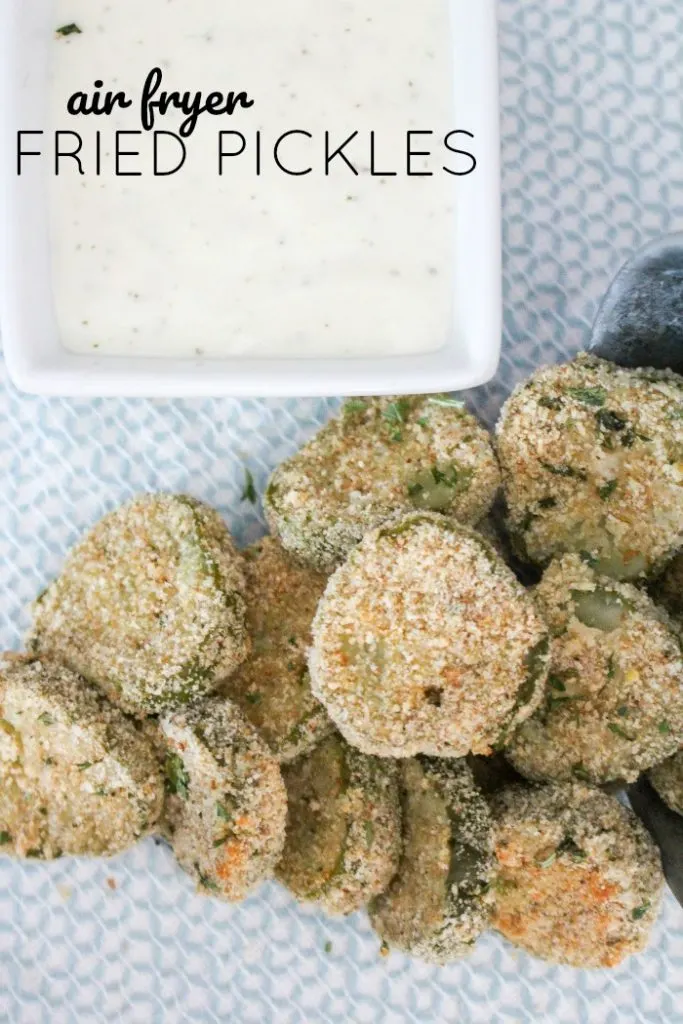 These beautiful air fryer fried pickles are fresh from an air fryer, not a pan of oil or the oven! They are crisp and tart and the perfect appetizer for any party or gathering you are having.
