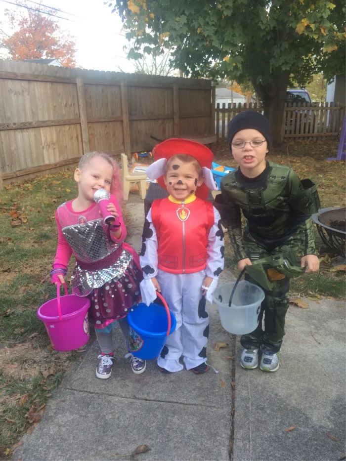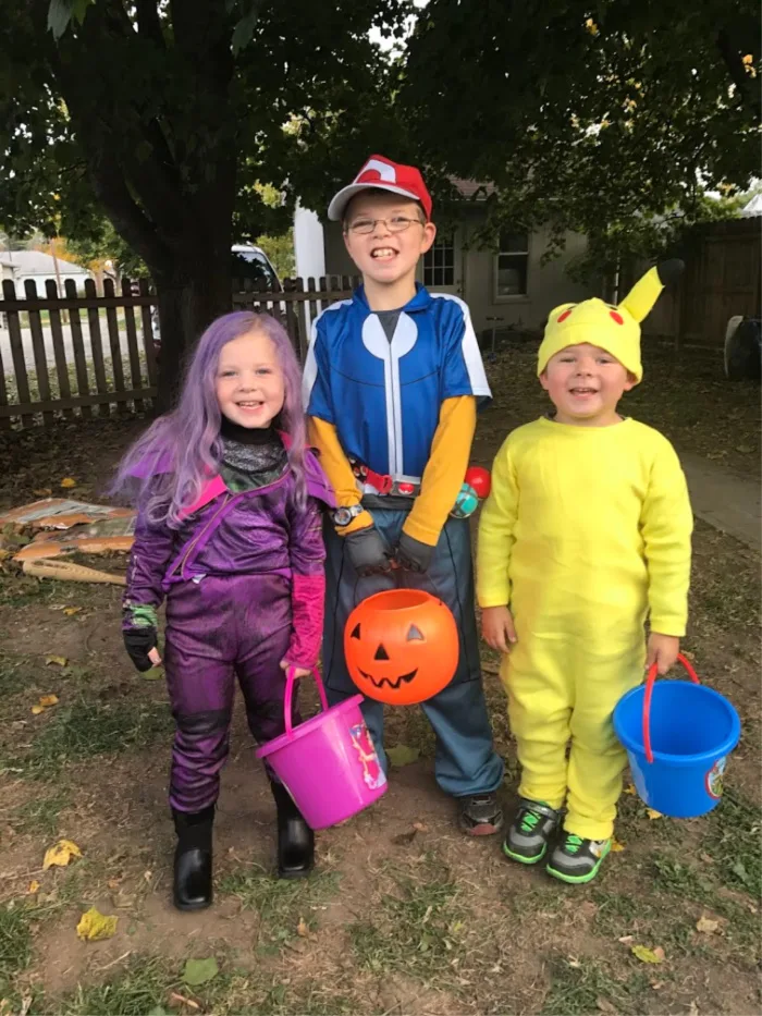 - Make sure they can see if wearing anything on their head – a hat, scarf, mask, whatever. Give everything a test run before the big night and make necessary adjustments. Sometimes the store-bought masks aren’t the right size, so be sure to try them on and have your kiddo walk around in the store before purchasing.