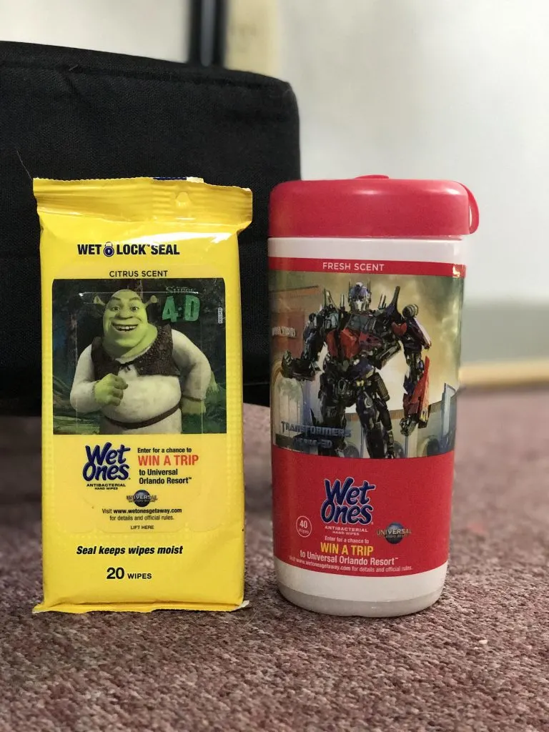 On the Specially Marked Wet Ones® Hand Wipes canisters (40 ct.) and travel packs (20 ct.), you can enter the “I Wish I Had a Trip to Universal Orlando” sweepstakes for the chance to win a 3-night trip for FOUR to Universal Orlando Resort™ that includes: