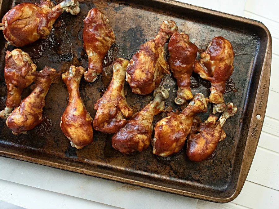 6. Transfer chicken legs to a baking sheet and cover with additional sauce, if desired.