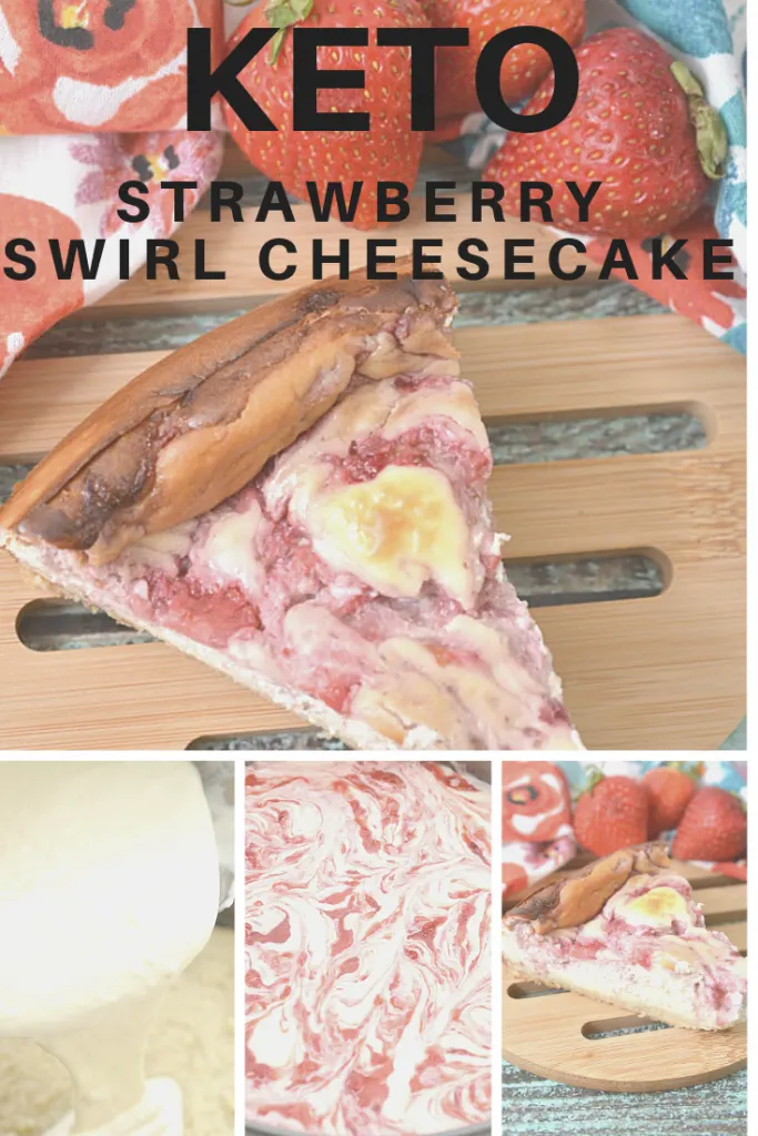 One of my biggest struggles with keto is the lack of sweets and desserts, and I think a lot of people have the same struggle. It’s hard, but I know that when you stick with it the results and how you feel can be amazing. Once you’ve gotten the hang of eating a low carb diet, it’s okay to try some new things and swap your favorite desserts for a low carb version. This Keto Strawberry Swirl Cheesecake is the perfect way to take something you love and make it with ingredients that fit your way of eating.