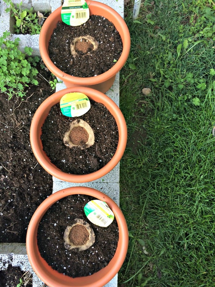 We went ahead and started some Miracle-Gro Gro-ables recently in pots that we can move indoors if we have a cold night. We planted three to start us off: romaine lettuce, spinach and basil. I’m already dreaming of the fresh pesto!