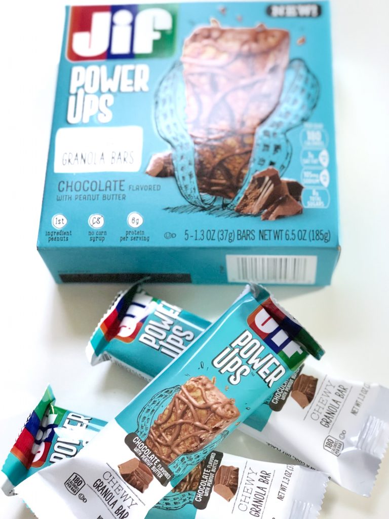 If you want a great option that travels well and you and keep stashed in your car or purse, pick up a box of the Jif Power Ups® snacks (available in granola bars or creamy clusters)! These are great for anyone in the family and definitely something I plan to keep a stash of for when we have multiple games/practices in the same day and can’t go back home to grab lunch.