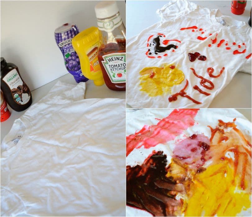 I had to have fun with it so I couldn’t just squirt on some random condiments, I smeared those babies in! After just one wash, with one Tide Pod and a quick run through the dryer…